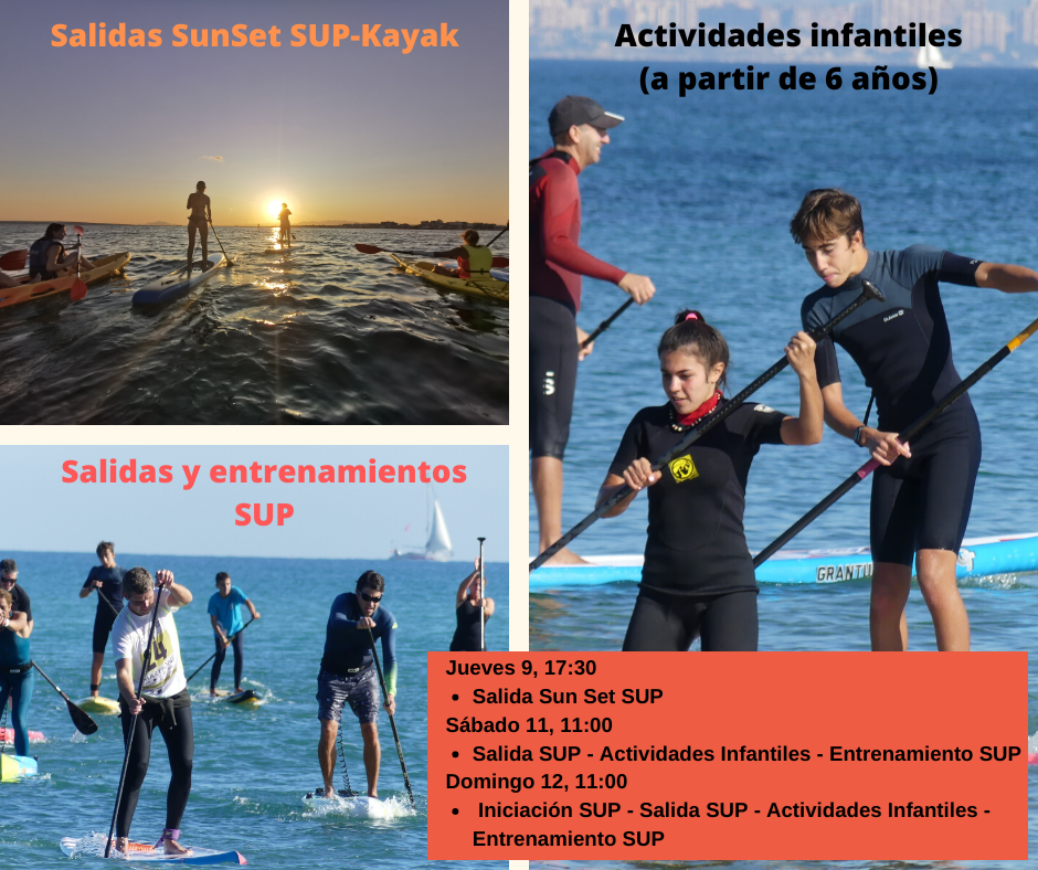 Tras los excesos de estas fiestas, hay que ponerse en forma. Esta semana tenemos salidas al atardecer, clases de iniciación, actividades para los chavales de casa, salidas los fines de semana y como no, nuestros súper entrenamientos de SUP Race. Deporte, Mar y un ambiente insuperable te esperan.